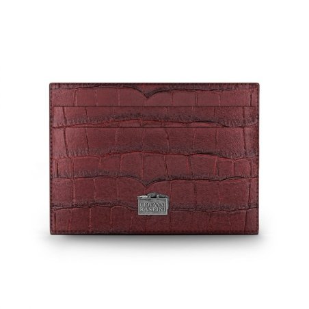 Elegante portacarte in pelle di vitello con texture coccodrillo, 4 scomparti e decoro in argento 925.