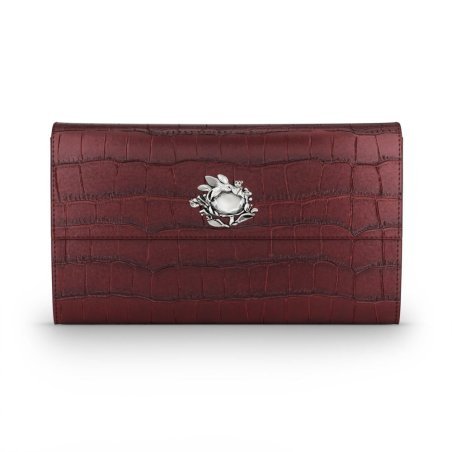 Portafoglio Continental in pelle croco borgogna con dettagli eleganti.