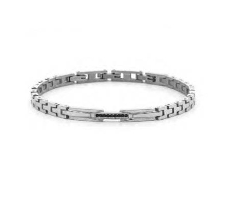 Bracciale da uomo in acciaio con targhetta e zirconi neri, firmato 4Us Cesare Paciotti.