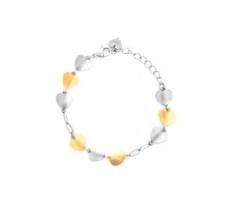 Il bracciale da donna della marca 4US Cesare Paciotti è un elegante accessorio realizzato in acciaio inossidabile. La catena è composta da cuori in acciaio lucido con finitura PVD oro, conferendo un tocco di lusso e raffinatezza. La lunghezza del bracciale è regolabile tra 15 cm e 20 cm grazie alla pratica catena di allungo, permettendo di adattarsi perfettamente al polso. La chiusura è dotata di una maglia a moschettone, garantendo sicurezza e facilità d'uso. Un gioiello perfetto per ogni occasione, che unisce stile e funzionalità.