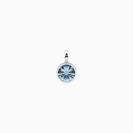 Ciondolo Kidult in acciaio con zircone azzurro tondo, elegante e moderno.