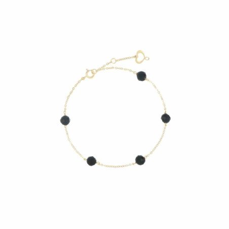 Il bracciale Maman Et Sophie è realizzato in oro giallo 18 carati, impreziosito da sfere di spinello nero sfaccettato di 5mm ciascuna. Questo elegante accessorio può essere regolato in tre diverse misure: 17 cm, 18 cm e 20 cm, adattandosi perfettamente al polso. Il design è completato da un cuore Maman traforato all'estremità del girocollo e una chiusura sicura con anello a molla. Ideale per chi ama i gioielli raffinati e versatili.