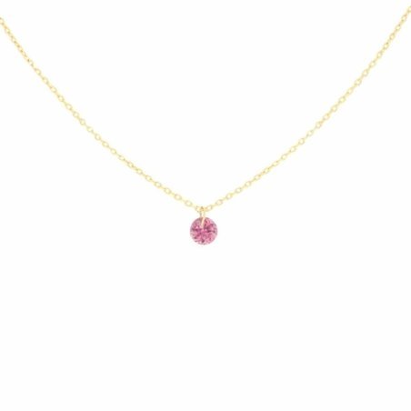 Girocollo in oro giallo 18Kt con pietra rodolite sospesa, elegante e raffinato.