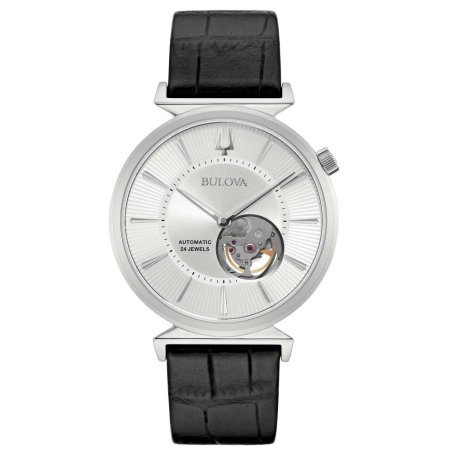 Il Bulova Regatta Automatic è un orologio meccanico elegante con cassa in acciaio e cinturino in pelle.