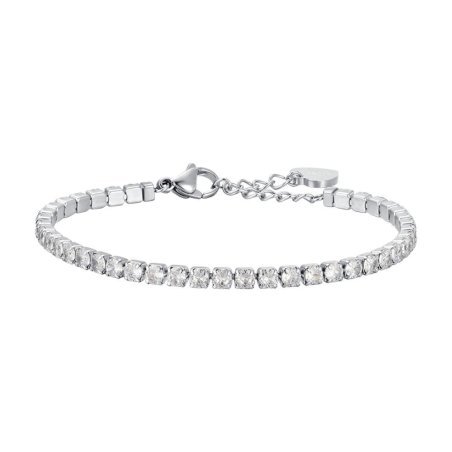 Bracciale tennis in acciaio con cristalli bianchi, elegante e raffinato.