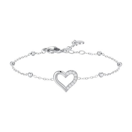 Bracciale in acciaio con cuore e zirconi bianchi, simbolo d'amore.