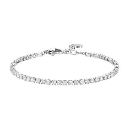 Bracciale tennis da donna in acciaio con zirconi bianchi, elegante e senza tempo.