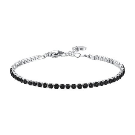 Bracciale tennis in acciaio con zirconi neri, elegante e versatile.
