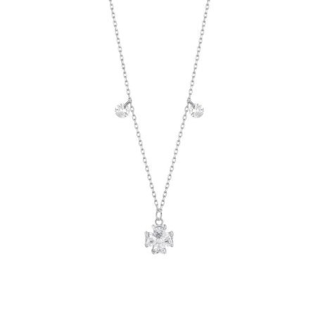 Collana in acciaio con quadrifoglio e zircone bianco di Luca Barra.