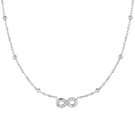Collana donna in acciaio con simbolo di infinito e zircone bianco, firmata Luca Barra.