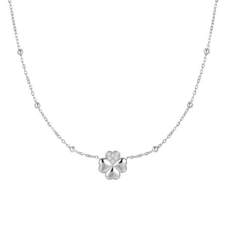 Collana donna in acciaio con quadrifoglio e zircone bianco, elegante e funzionale.