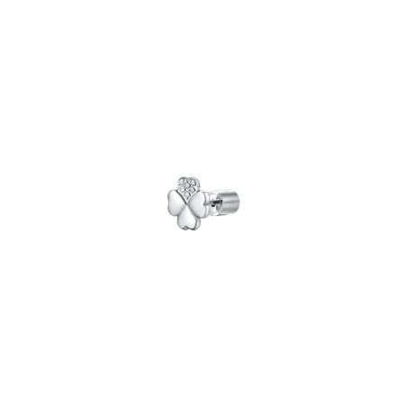 Elegante mono orecchino in acciaio con quadrifoglio e zircone bianco.