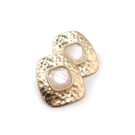 Gli orecchini Nuova Retrò di Aquaforte presentano un design elegante con quadrati in madreperla e una superficie battuta lucida. Realizzati in argento 925‰ placcato oro giallo 23kt, questi orecchini sono dotati di un rivestimento speciale che protegge dalla naturale ossidazione del metallo. Orgogliosamente fatti a mano in Italia, le placcature sono rigorosamente senza rilascio di nichel e cadmio, garantendo un comfort fit eccezionale.