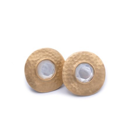 Orecchini retrò con madreperla tonda e superficie battuta, placcati oro.