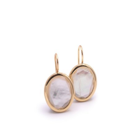 Orecchini ovali in madreperla con placcatura oro 23kt, fatti a mano in Italia.