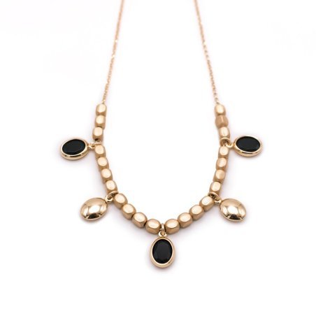 Collana elegante in argento 925 placcato oro 23kt con charms neri.