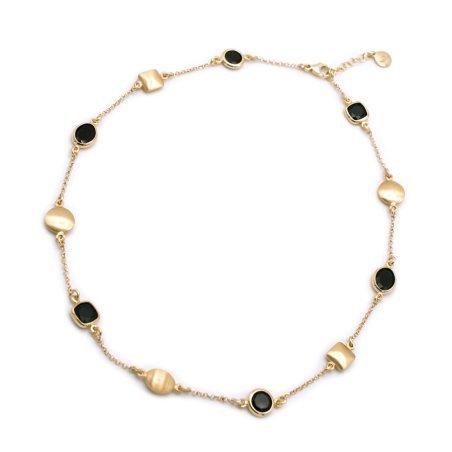 Collana Mignon in argento 925‰ placcato oro giallo 23kt con paste vitree nere, comfort fit.