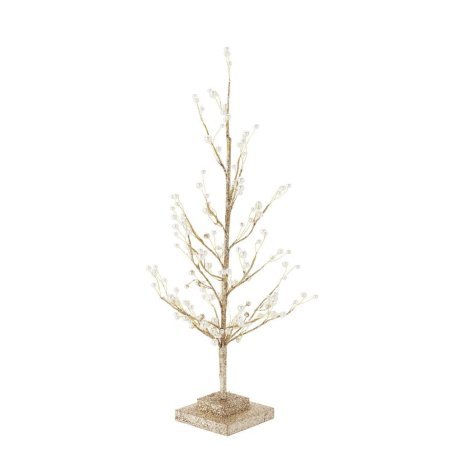 Elegante albero decorativo con perle e glitter, alto 45 cm, in plastica e metallo, nei colori oro e argento, parte della collezione 'Gocce Brillanti'.
