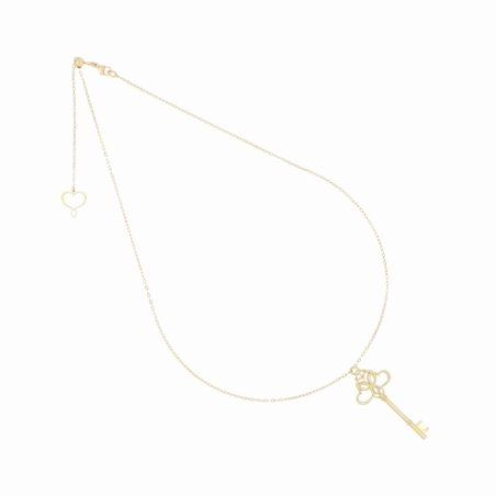 Girocollo Chiave Gialla in argento 925 placcato oro, con chiave pendente e cuori maman intrecciati, regolabile fino a 44 cm.