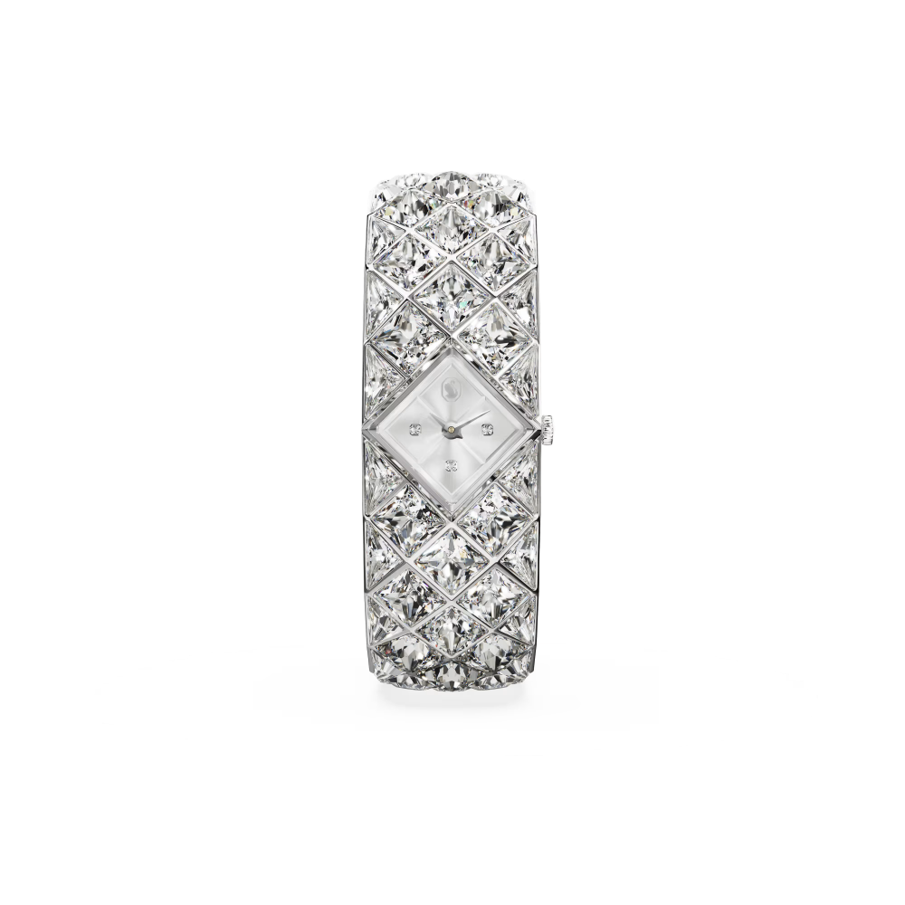Con un totale di 47 cristalli, lo spirito lussuoso di Curiosa si esprime magnificamente in questo orologio stile bangle, che mette in risalto la tradizione e il savoir-faire di Swarovski. Il design in acciaio inossidabile è un tributo all’epoca vintage, con una cassa di 20 mm (largh.) x 20,5 mm (lungh.) che si inserisce perfettamente in uno splendido set di bracciali con cristalli taglio Triangle e Fancy. Anche il quadrante include cristalli come indici dei quarti d’ora. Un accessorio brillante per le tue occasioni più sofisticate, questo orologio è resistente all’acqua fino a 50 metri e rivela l’iconico logo cigno a ore 12.