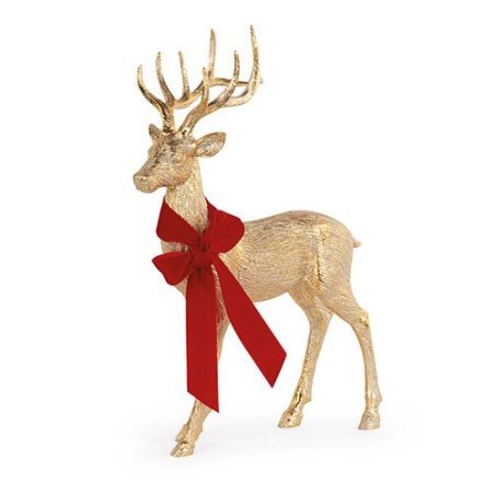 Elegante cervo decorativo con nastri bordeaux e verde, altezza 520 mm.