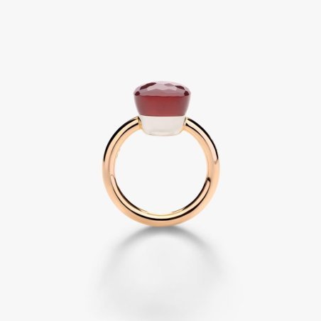 L'Anello Nudo Classic di Pomellato è un'icona di eleganza e modernità. Questo anello presenta un design raffinato con una pietra 'nuda' che offre infinite varianti cromatiche. Realizzato in oro rosa e bianco 18K, è impreziosito da un granato di circa 9 carati. Perfetto per essere abbinato ad altre pietre di dimensioni differenti, questo anello rappresenta una scelta sofisticata per chi ama il lusso discreto e il design contemporaneo.