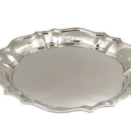 Elegante vassoio tondo sagomato con piedini di Royal Family, ideale per servire con stile.