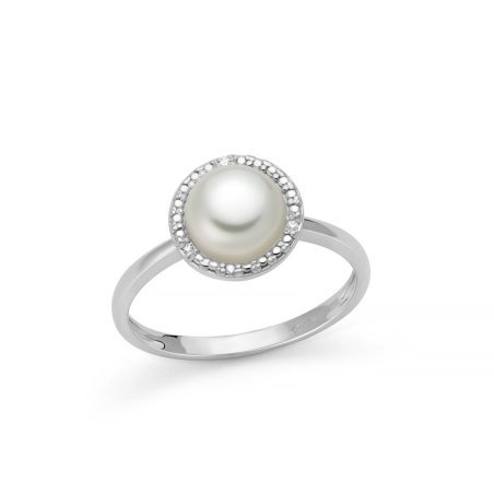 Anello Miluna con perla Oriente e diamanti in oro bianco 375.