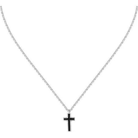 Collana Sector Spirit Uomo in acciaio e smalto, pendente croce, colore silver e nero.