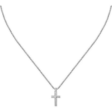 Collana Sector Spirit in acciaio con pendente croce, per uomo, colore silver.