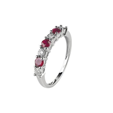 Anello in oro bianco con diamante e rubino, taglio rotondo, caratura 0.06.