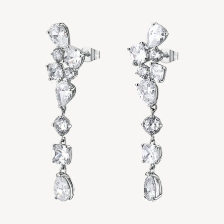 Orecchini pendenti in acciaio con cubic zirconia, eleganza moderna.