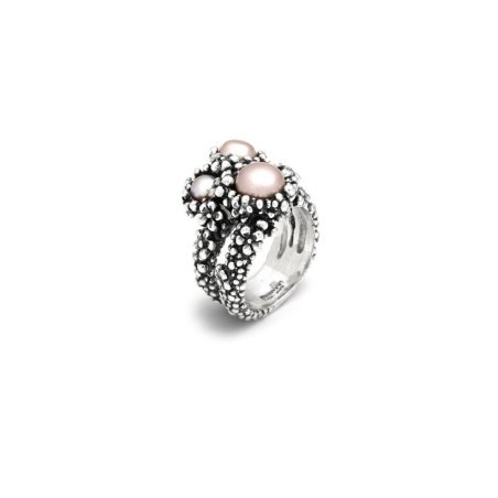 Anello Blossom Grande di Giovanni Raspini in Argento 925 con perle rosa naturali, fatto a mano in Italia.