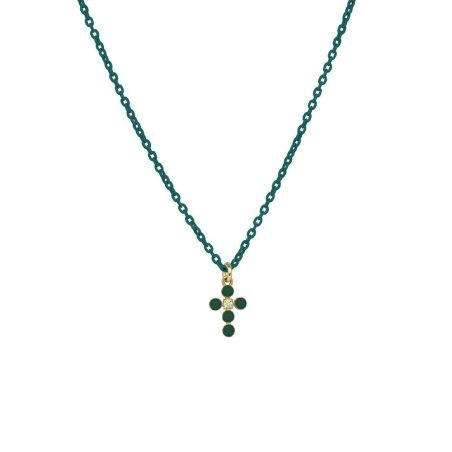 Girocollo in oro 18Kt con croce smaltata e diamante lab-grown, catena verniciata.