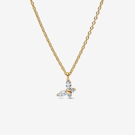 Apri le ali e trasforma il tuo look con questa collana rifinita in oro. Con cristalli creati dall'uomo incolori taglio rotondo brillante e marquise, presenta una farfalla che pende con grazia dalla catena. Zirconia cubica