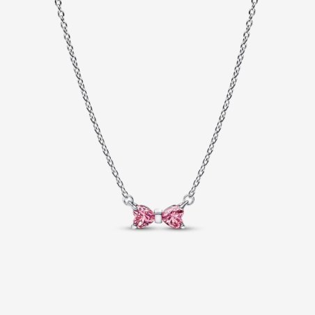 Legati dall’amore. Su questa collana in Argento Sterling 925, due pietre rosa a cuore formano un fiocco fissato alla catena. Regolabile su tre lunghezze, aggiungila al tuo look per un tocco di grazia e belle zza.