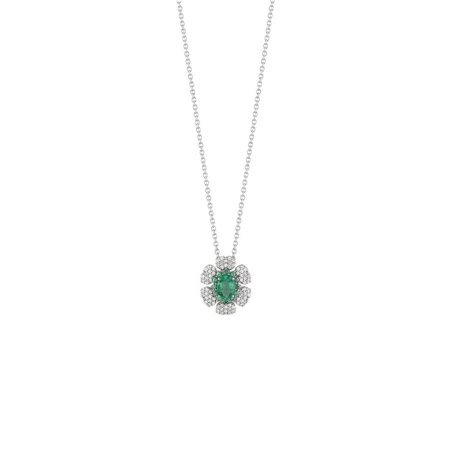Collierino in oro bianco con diamante e smeraldo, elegante e raffinato.