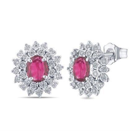 Orecchini in oro bianco Bliss con diamante e rubino, taglio ovale.