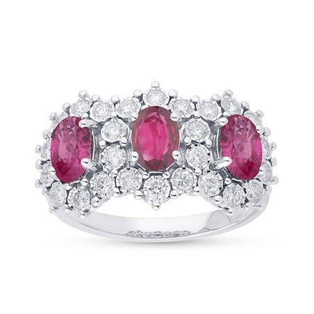 Anello in oro bianco con diamante e rubino, taglio ovale, caratura 0.52, colore G.
