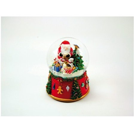 Schneekugel da 150 mm con Babbo Natale e regali, melodia natalizia.