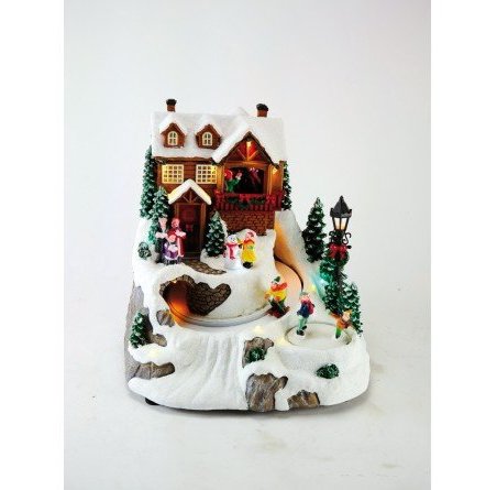 La Scena di Sciatori di Il Mondo Dei Carillon è una decorazione natalizia che porta la magia delle piste innevate direttamente a casa tua. Gli sciatori e snowboarder scendono la pista mentre un medley di 8 melodie natalizie risuona, accompagnato da effetti di illuminazione. Dispone di un interruttore a 3 vie: spento, acceso senza musica e acceso con musica. Non adatto per un uso continuo. Funziona a batterie (3xAA non incluse) o con adattatori a batteria con alimentatore (da ordinare separatamente). Dimensioni: 240 x 235 x 250 mm.