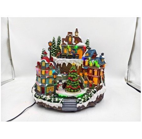 Villaggio di Natale con albero rotante e 8 melodie, perfetto per le feste.