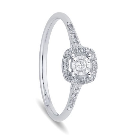 Anello in oro bianco con diamante taglio rotondo, caratura 0.1.