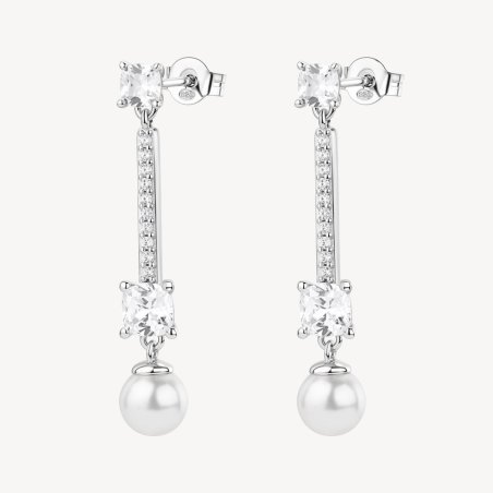 Orecchini Fancy di Brosway in argento con perle e cubic zirconia.