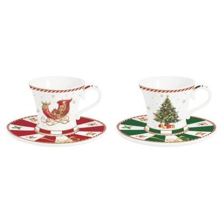 Set 2 tazzine caffè con piattino in porcellana, collezione natalizia.