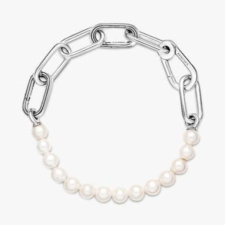 "Le perle, rivisitate: questo Bracciale Maglia Link con Perle d’Acqua Dolce Coltivate Pandora ME prende l’iconica perla e la trasforma in un gioiello con infinite possibilità di personalizzazione. Il bracciale presenta du"