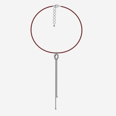 La collezione Foedus di Pianegonda trae ispirazione dalle corde marinare, simboli di forza e continuità. Le forme dei gioielli richiamano i nodi intrecciati, elementi essenziali nell’arte della navigazione, reinterpretati per abbracciare ed esaltare le forme del corpo. Il nodo diventa il dettaglio che cattura la vera essenza di una connessione profonda e duratura. Realizzata in Argento 925 e pelle, questa collana misura tra 400 e 450 mm, perfetta per chi cerca un accessorio elegante e significativo.