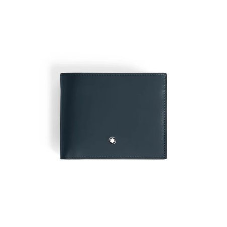 Portafoglio bifold Montblanc in pelle blu con 6 tasche per carte.