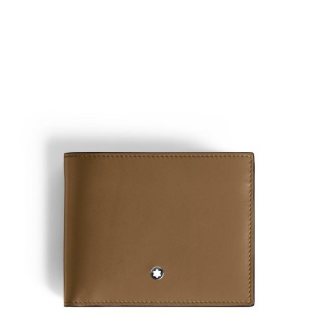 Portafoglio bifold in pelle sabbia con 6 tasche e emblema Montblanc.