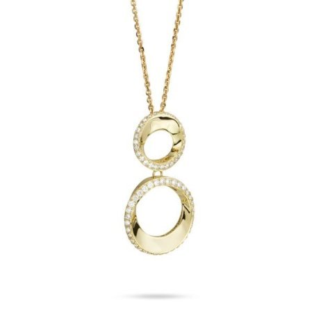 Collana placcata oro giallo con pendente a doppio cerchio di pavè di zirconi.